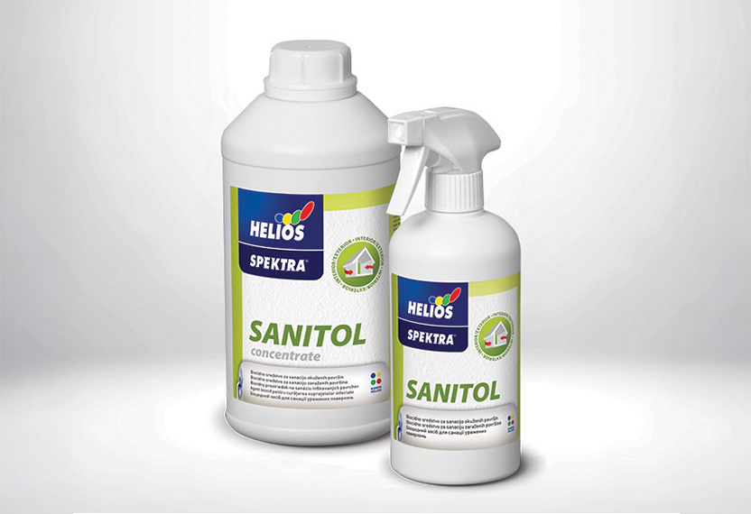 Infected surfaces are first coated once with diluted SPEKTRA Sanitol biocide, which can be applied with a brush, roller or low-pressure sprayer. The preparation is diluted with water to a ratio of 1:4, depending on the degree of contamination. In the case of higher biological loads, the process is repeated or the undiluted product is used.