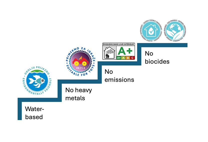 We have exceeded these requirements with SPEKTRA Pure&Care. We have adapted the paint formulation so that it is stable and resistant to micro-organisms or bacterial infections, without the usual additives for biocidal paint protection. It is a user and environmentally friendly interior wall paint, especially suitable for allergy sufferers. The paint is suitable for nurseries, schools, office spaces, bedrooms, children’s rooms, dining rooms ... and other heavily used areas.