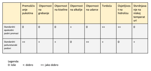 Svojstva epoksidnih i poliuretanskih podnih premaza
