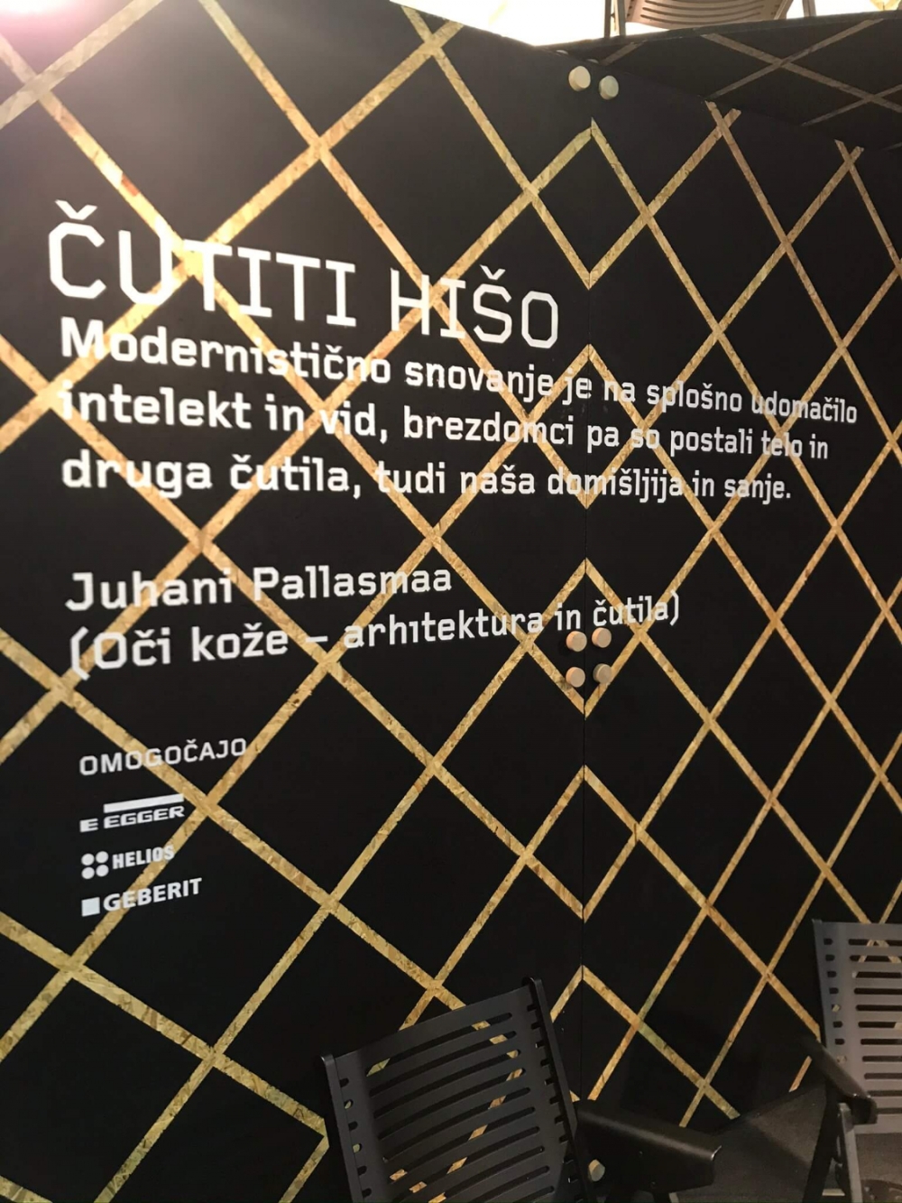 Namen razstave je bil stopiti v korak z dinamičnim razvojem novih, inovativnih materialov, ki močno vpliva na sodobno gradnjo in spreminja način kako živimo in občutimo prostor. Čutiti hišo je razstava, ki v interakciji z obiskovalci raziskuje nove, inovativne gradbene materiale. Z dotikom so obiskovalci doživeli material onkraj zgolj vizualne dimenzije.