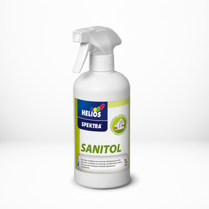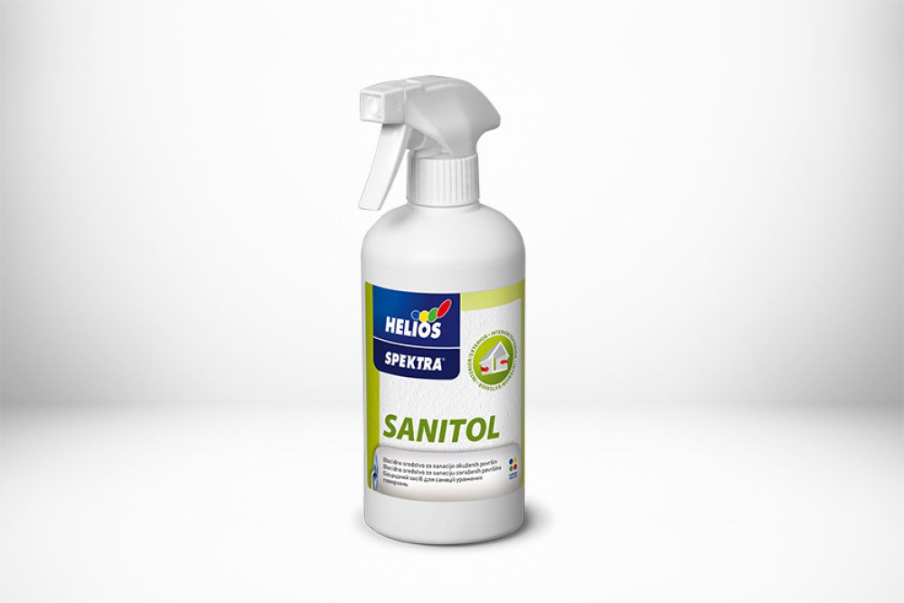 SPEKTRA Sanitol (razredčen z vodo do 1 del Sanitola + 4 deli vode) nanašamo na okužene površine in še vsaj 20 cm okoli okužbe z večjim pleskarskim čopičem, da ga čimbolj vtremo v podlago. Ko se nanešeni SPEKTRA Sanitol posuši, površino narahlo obrusimo s finim brusnim papirjem (št. 150-180) ali primernim brusnim strojem. Če je okužba zelo velika, lahko postopek tudi ponovimo.