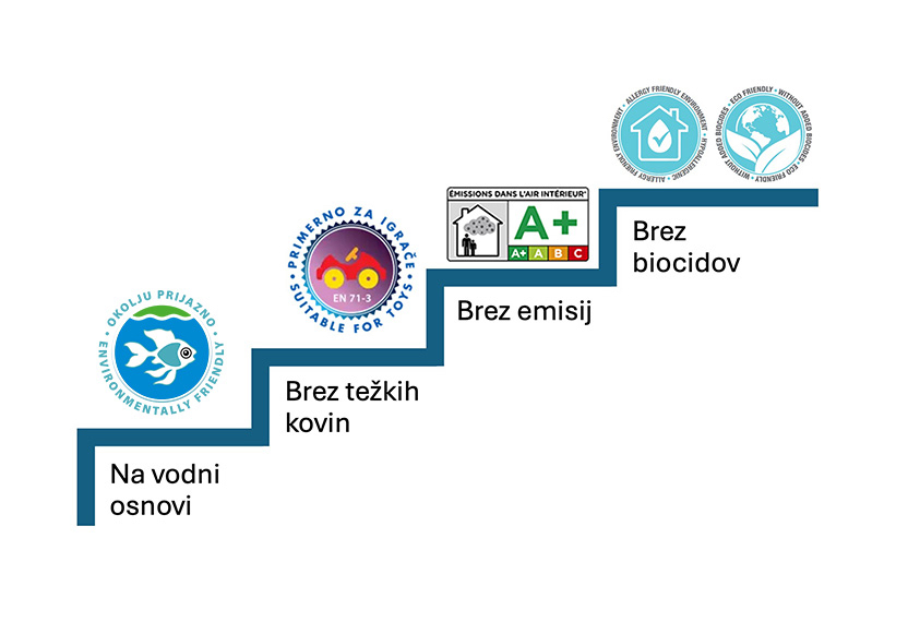 Za veliko večino zidnih barv smo v skupini KANSAI HELIOS pridobili A+ certifikat. Tudi pri razvijanju novih izdelkov smo predani načelom trajnostnega razvoja ter čim manjšega vpliva na okolje. Nekatere zidne barve imajo še dodatne lastnosti, ki prispevajo h kvaliteti notranjega zraka (ugodja), kot sta SPEKTRA Active Air ter SPEKTRA Pure&Care.